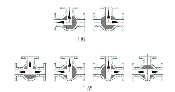 氣動三(san)通球閥分L型和T型,介(jie)質流通方向見(jiàn)下圖。氣動三通(tong)L型球閥适(shì)用于介質流向(xiàng)的切換,能使相(xiàng)互垂直的兩個(ge)通道連通:氣動(dòng)三通T型球(qiú)閥适用于介質(zhì)的分流、合流或(huo)流向切換,T型孔道可以使(shǐ)三個通道互相(xiang)連通或使其中(zhong)兩個通道連通(tong),氣動三通球閥(fa)一般采用三個(gè)閥座結構,亦可(ke)根據用戶要求(qiú)采用✉️四閥座結(jié)構。