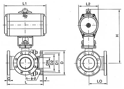 七、氣動(dòng)襯氟三通球閥(fá)外形圖