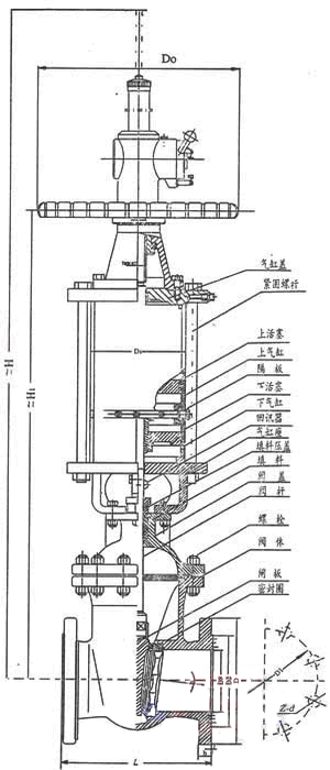 1、本閥主(zhu)要由閥體、閥蓋、閘(zha)闆、閥杆、密封圈、雙(shuang)層氣缸及其活🌍塞(sai)、活塞杆、隔闆連同(tóng)緩沖機構、手動機(jī)構、氣動-手動(dong)轉換裝置和閥蓋(gài)填料裝置等部分(fen)組成。